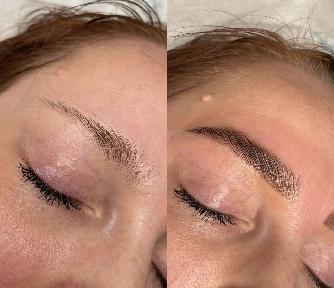 Často se v rámci procesu provádí i barvení obočí pro jednotnější vzhled.
